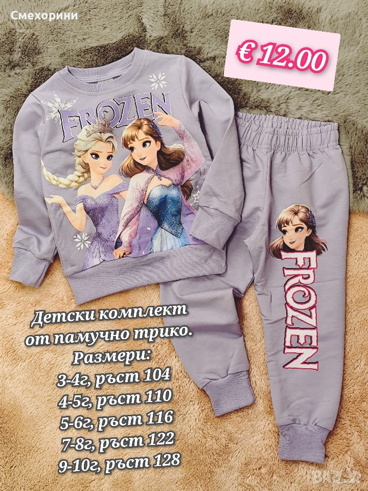 Нов детски памучен комплект от три части с Елза и Анна от Фроузън, за момиченца. Наличен в размери 104, 110, 116, 122, 128см