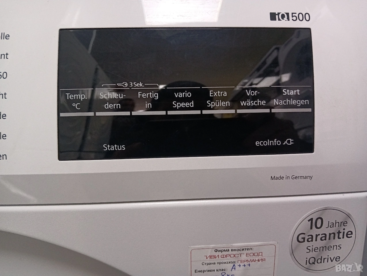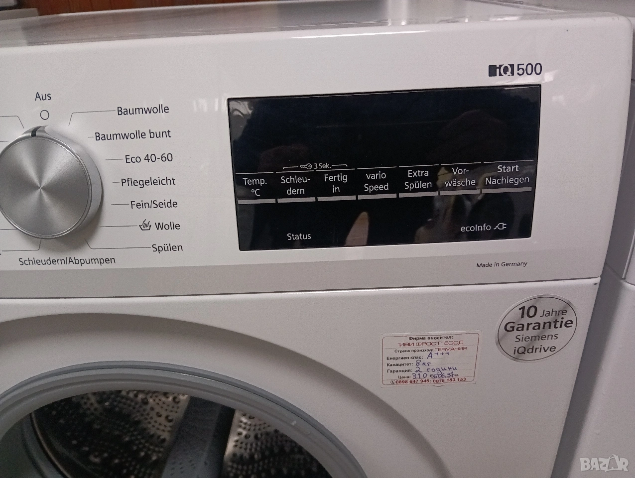 Чудесна сушилна с термопомпа Сименс с лед дисплей, отложен старт, изцяло тъчскрийн управление на бутоните, инверторен мотор, инверторен компресор, функция гладене при която дрехите излизат от сушилнята без гънки и др.