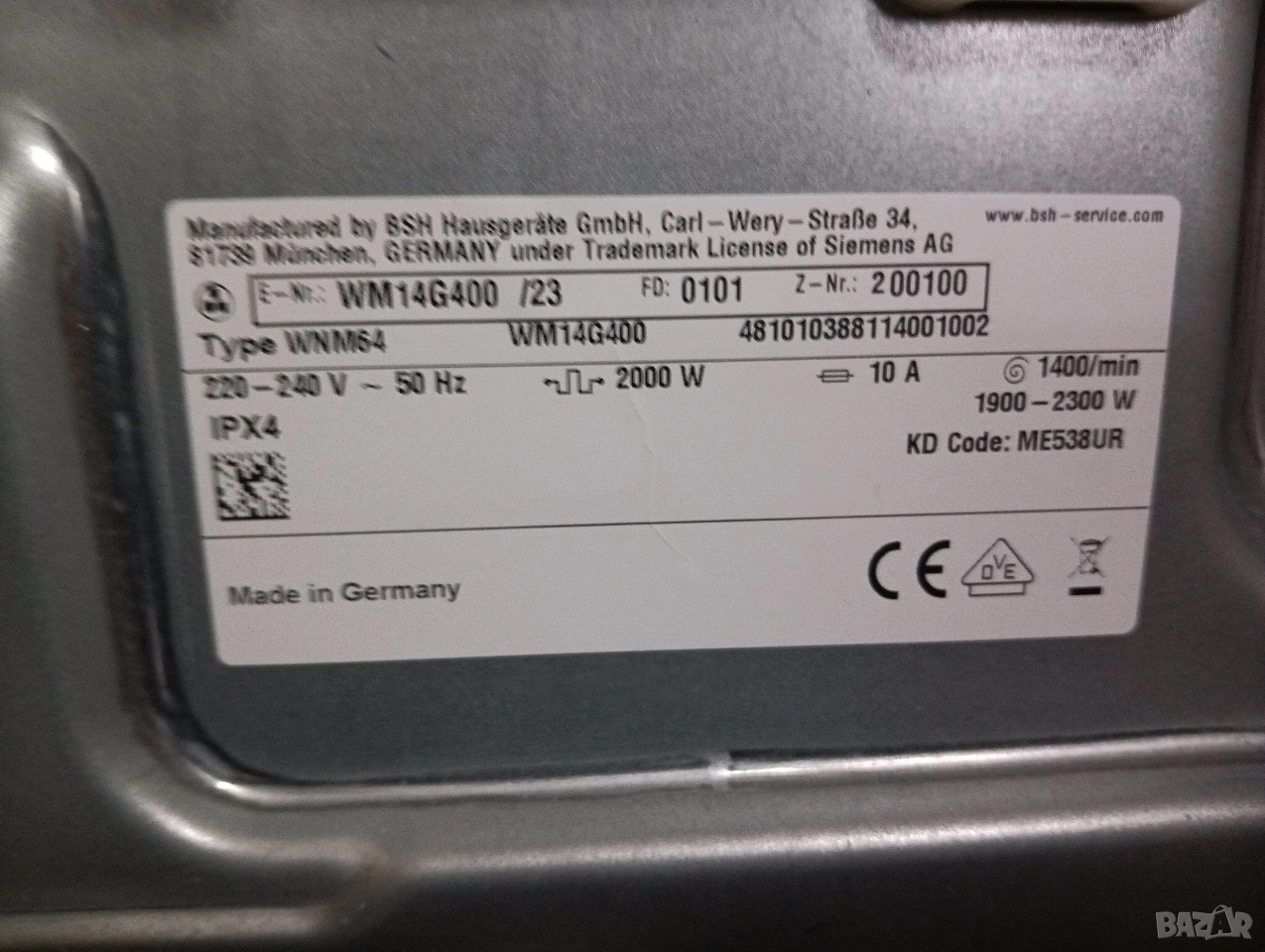 Пералнята е с инверторен мотор с 1400 оборота