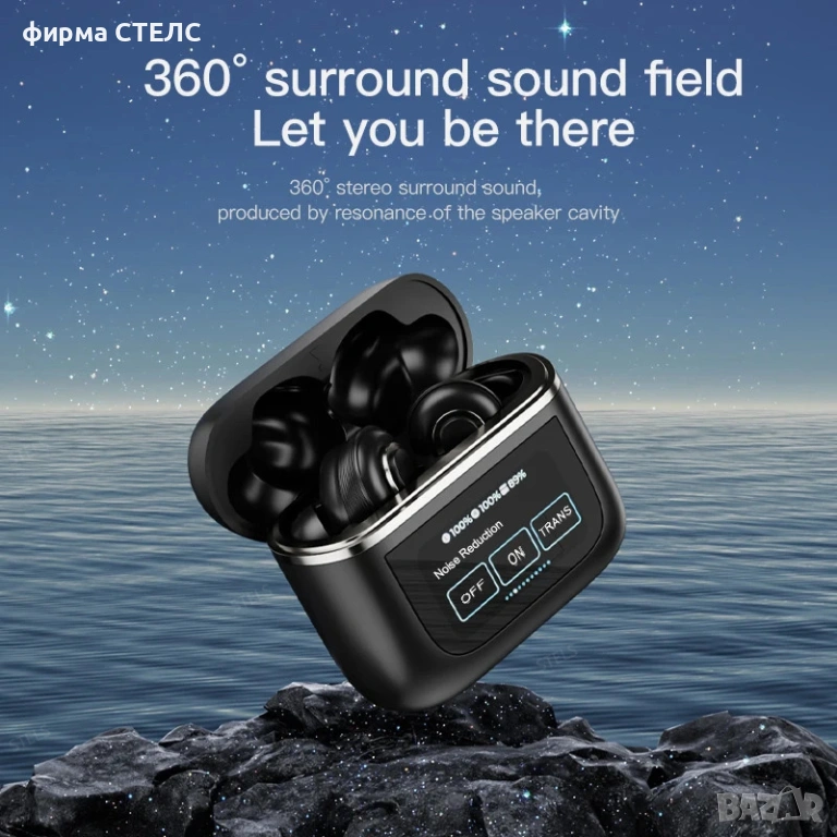 Тези модерни блутут слушалки са оборудвани с 11-милиметрови говорители за плътен бас и 360-градусов пространствен звук. Ергономичният дизайн тип тапи осигурява комфорт дори при продължително носене.