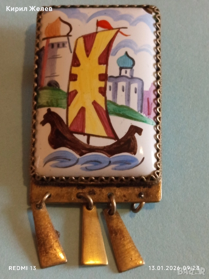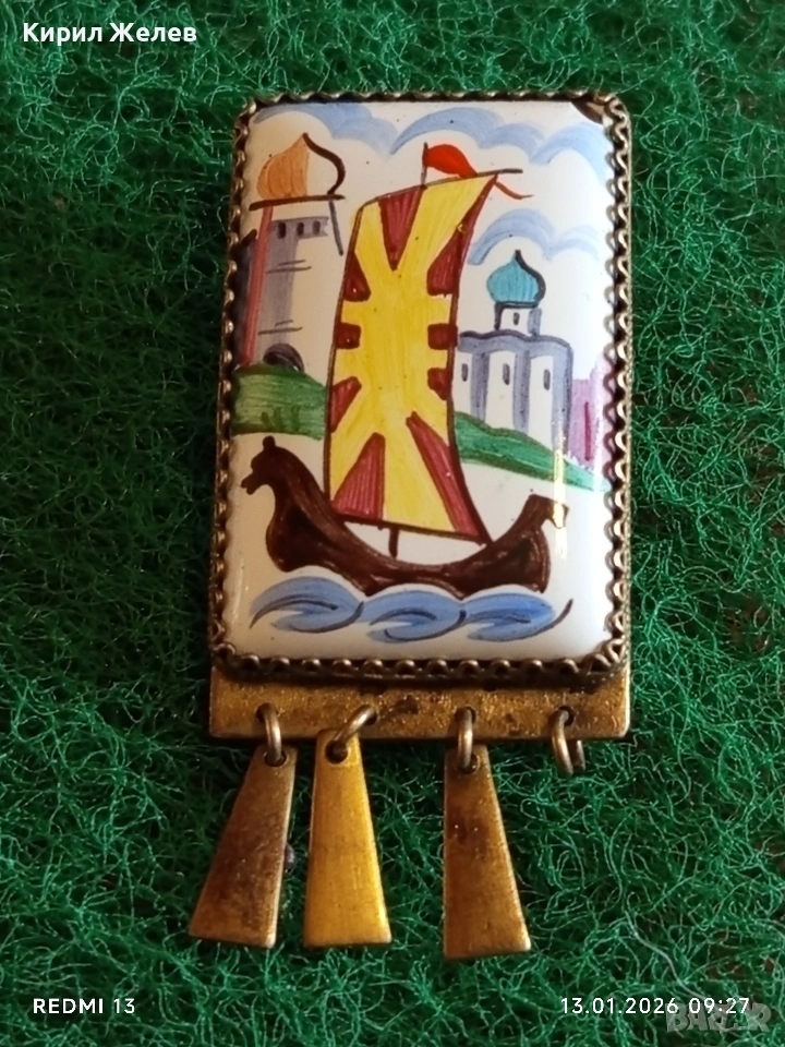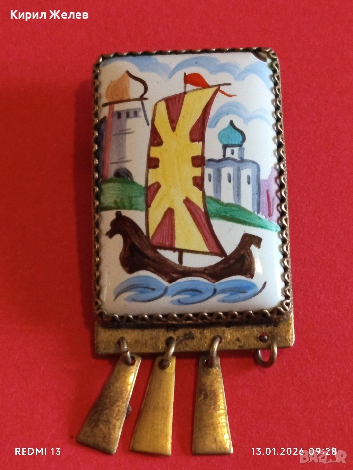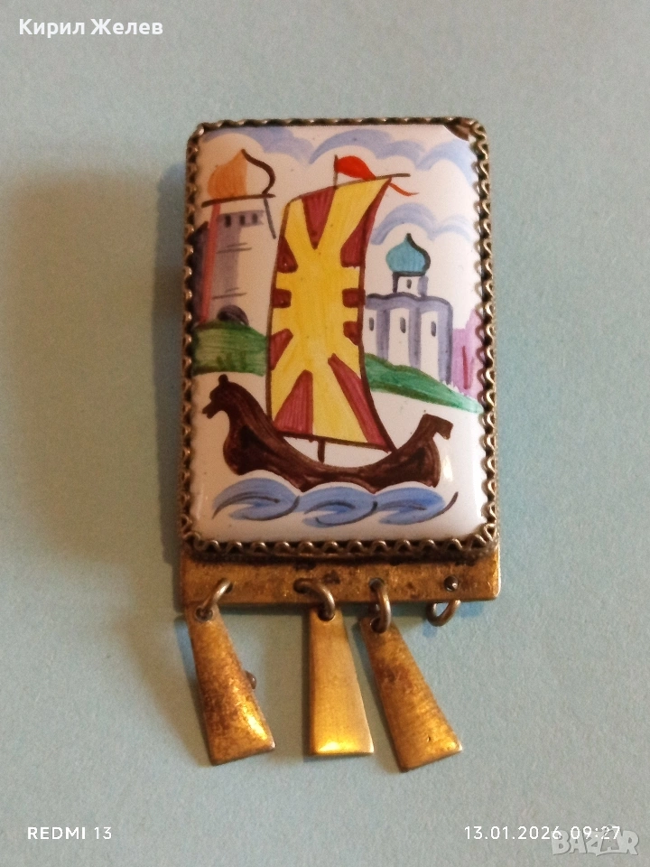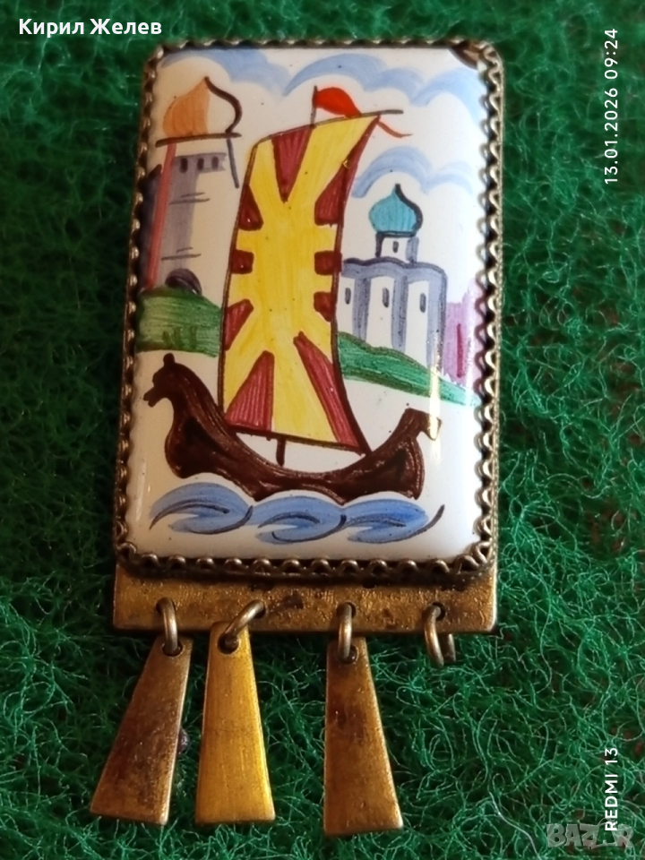 Колекционерска брошка от СССР ръчно рисуван порцелан приказка 52815