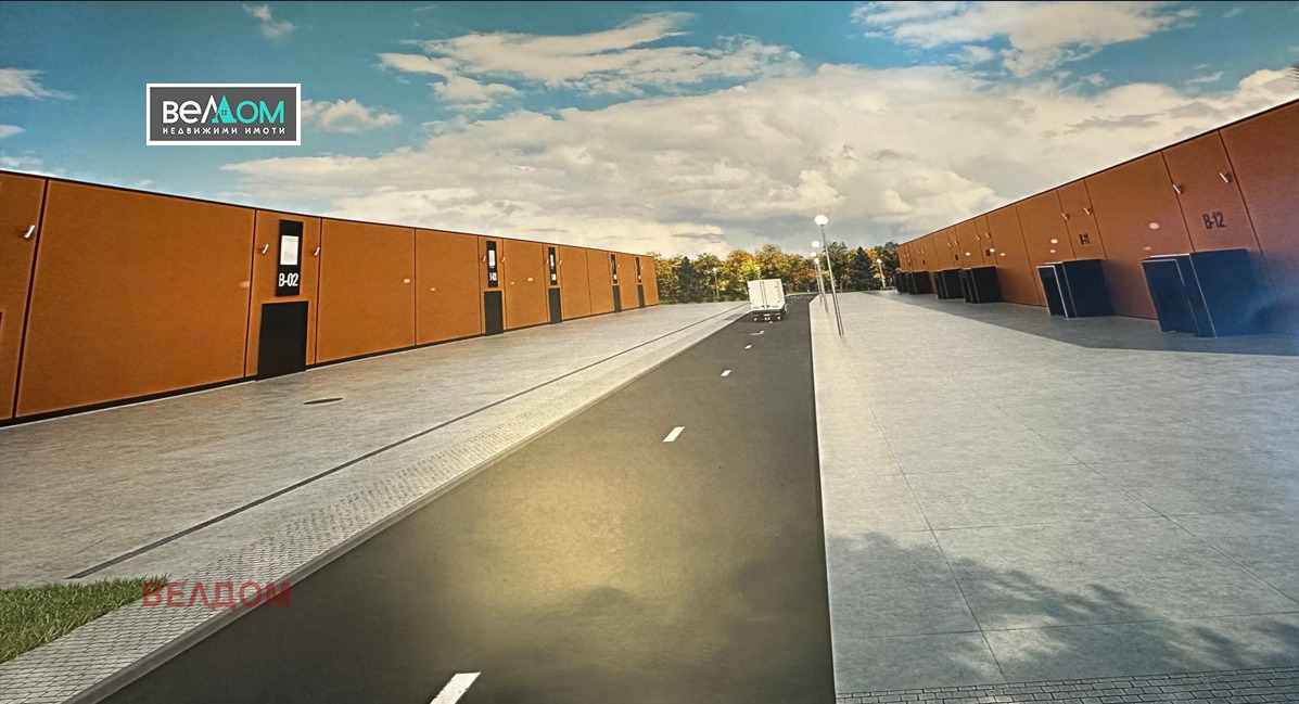 Агенция ВЕЛДОМ дава под наем нов склад с площ 500 м2. МОГАТ ДА СЕ НАЕМАТ И ПО-ГОЛЕМИ ПЛОЩИ 1000, 1500, 2000 и т.н. м2, кратни на модула 500 м2. На главен асфалтов път с непрекъснат автопоток- място лесно за обяснение и ефективна реклама. Метална конструкция, термопанели (с каменна вата) 12 см, гарантиращи микроклимата, без колони в пространството на модула 20 на 25 м, с височина 9 м и 8 м, с входове от 2-те страни на кота нула и на кота 1,20 м с прецизно нагаждаща се рампа. Електронни врати: на кота нула 4,0 на 4,50 м, на кота 1,20 м-3,0 на 3,0. Широки асфалтирани улици, голяма маневрена площ за ТИР-ове, озеленяване. В склада: под шлайфан бетон, пожароизвестяване, осигурени трифазен и монофазен ток, вода и канализация. Възможно е изграждане на офиси според нуждите на наемателя, съгласувани с наемодателя. Цената включва разходите по поддръжка общи части като: районно-парково осветление, поддръжка зелени площи, почистване на улици и паркинги, контрол на достъпа, видеонаблюдение и заснемане. За ползване за складиране на открита складова площ -1 Е/м2 без данъка. Готовност м. декември 2026 г.