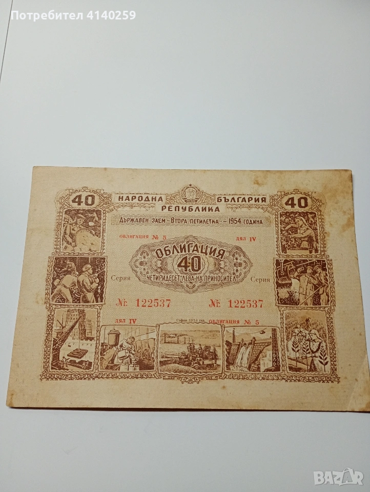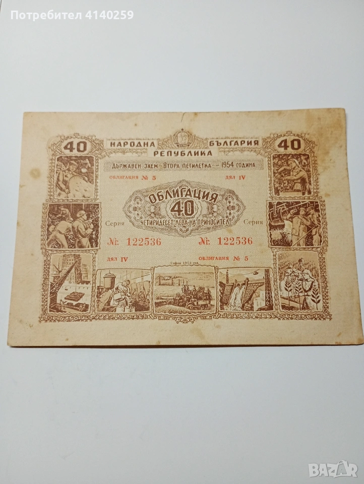 ОБЛИГАЦИЯ БАНКНОТИ 40 ЛВ 1954 Г → Обява 53081803