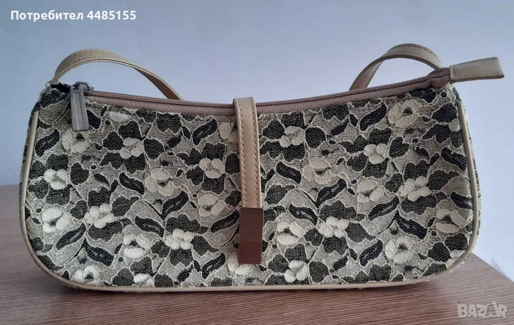 Малка готина дамска чантичка Zillion FASHION. Събира всичко необходимо за едно излизане. Вътре е едно пространство, има и немалък джоб с цип от едната страна. Платът е дантела върху тъмна основа. Излъчването й е лятно, закачливо, кокетно и безгрижно. И много дамско. Може да се носи с дънки, рокля, пола, панталон, маратонки, обувки, кубинки и сандали. На едната снимка се виждат сребърни отблясъци от дантелата. Затваря се с цип и магнитна закопчалка. Дръжката е за носене на рамото под мишницата или за носене в длан. Не съм я носила много, все пак е употребявана.