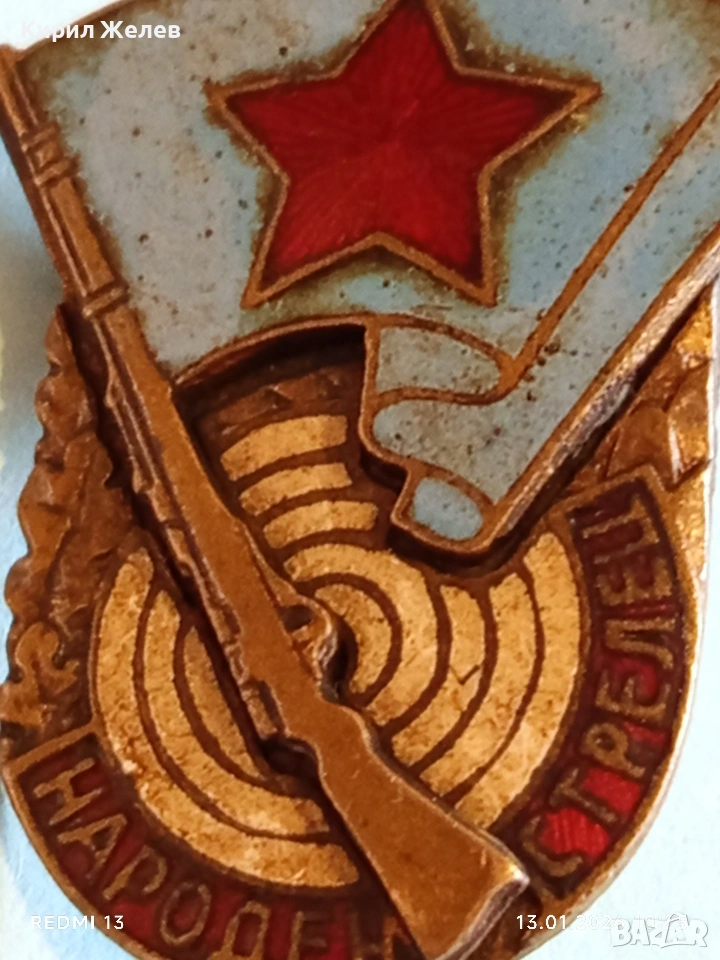 Нагръден знак НАРОДЕН СТРЕЛЕЦ с емайл от соца рядка за КОЛЕКЦИЯ 52794
