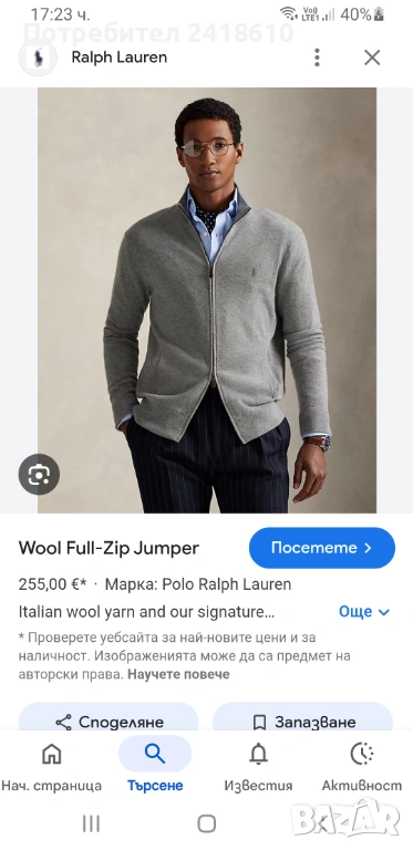 POLO Ralph Lauren Cardigan Merino Knitted Full Zip Mens Size L ОРИГИНАЛ! Мъжка Вълнена Жилетка с цял