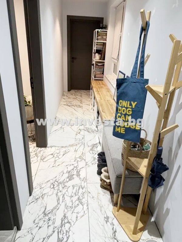 Оферта 43309. Апартаментът се намира в сграда, въведена в експлоатация 2023 г. в непосредствена близост до Пешеходния мост на р.Марица. Състои се от хол с кухненски бокс, спалня с гардеробна стая към нея, коридор, баня с тоалетна и две тераси (едната просторна с чудесна панорамна гледка). Изложение югоизток-северозапад. Напълно обзаведен с нови мебели. Висок клас ел. уреди, кухня Лорита с технически камък - плот и гръб. Настилката на целия апартамент е испански гранитогрес имитация на мрамор, а на едната тераса - декинг. Два климатика General Electric с ниски сметки за отопление. 7 см изолация на тавана.