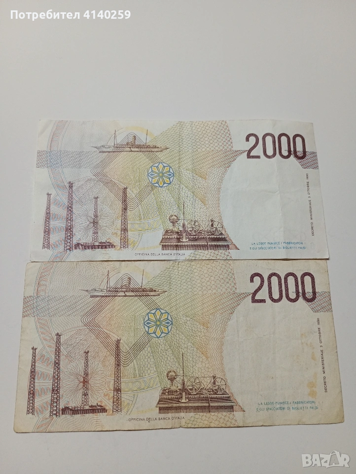 ИТАЛИЯ БАНКНОТИ 2000 ЛИРИ 1990 Г → Обява 53082417