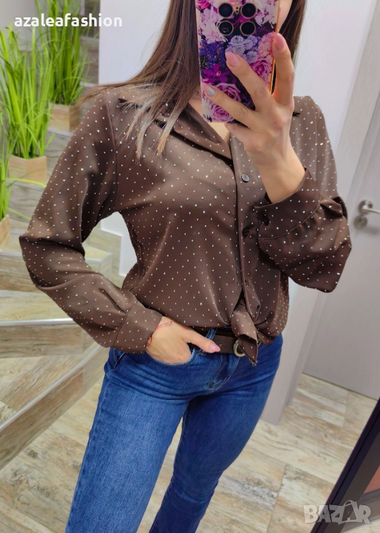 Дамска риза с камъчета, снимка 1 - Ризи - 53082507 Дамска риза с камъчета, снимка 2 - Ризи - 53082507 1/2