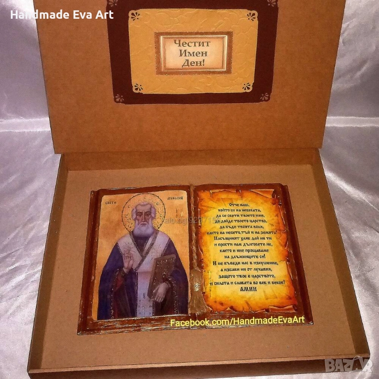 Книга икона със Св. Антоний и личен поздрав- подарък за всеки повод → Обява 53082528