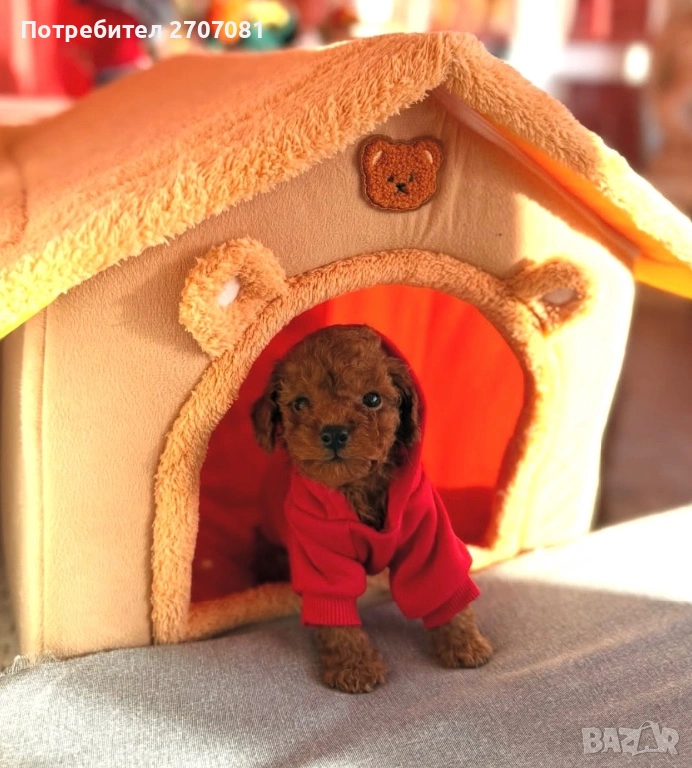той пуделчета, които нямат никаква смесица с други породи, чист цвят, а родителите може да видите на снимките. Разполагаме с две момичета и две момчета. Едното момиче вече е капарирано. Кученцата се дават с две или три ваксини, с една ваксина НЕ ДАВАМЕ КУЧЕ. Те са вътрешно обезпаразитени с Прококс. Храним ги с хубава храна и се грижим отлично за тях. Преди да вземете кученцето ние правим тройния тест - Корона, Паровироза и Корона. След закупуването му, ние сме винаги на разположение за въпроси. Ежегодно организираме пуделски срещи на които обменяме опит и превръщаме срещата в истинска забава. С кученцето вървят и инструкции за отглеждането му. Нашите кучета са гледани по най-добрият начин, ваксинирани, обгрижвани. Даваме им имуностимуланти Ветомуун. Ние не разчитаме, че ще се привържете към кучето и ще забравите, че сте искали ТОЙ, а той е станал/а МИНИ, или искате МИНИ, а той е станал среден. Когато си купите от нас куче, то е такова каквото сте искали и очаквали. Може да предоставим и препоръки от наши клиенти. Нашите мъничета не се гледат в клетки, а в специални кошарки, водата, пелените се сменят през два часа! Стаите поддържат температура, която е здравословна за бебетата и майката, разполагаме с инфрачервени лампи, климатик и подово отопление. Бащата е висок е 26 см и тежи 3.5 кг., внос от Русия, а майката е висока 27 см и тежи 4 кг. Ние отглеждаме пудели от 15 години и знаем роднините на кучето от три поколения! Не правим смесеци, нито с различни породи, нито смесваме ТОЙ с МИНИ или обратното. Кученцата ще могат да отидат при новите семейства през юни. Ако решите да вземете куче от нас капарирате го, ние даваме ДОГОВОР, който пази Вашите права, нашити, както и правата на кученцето.