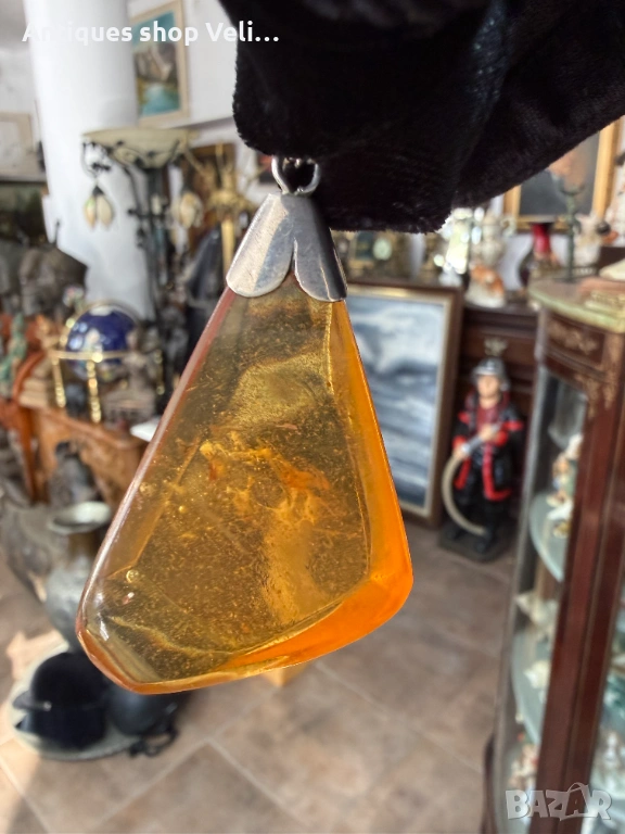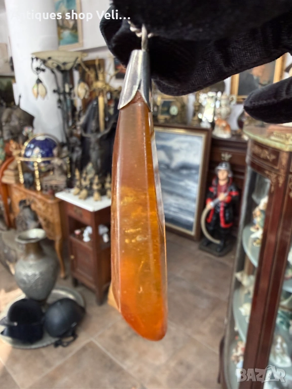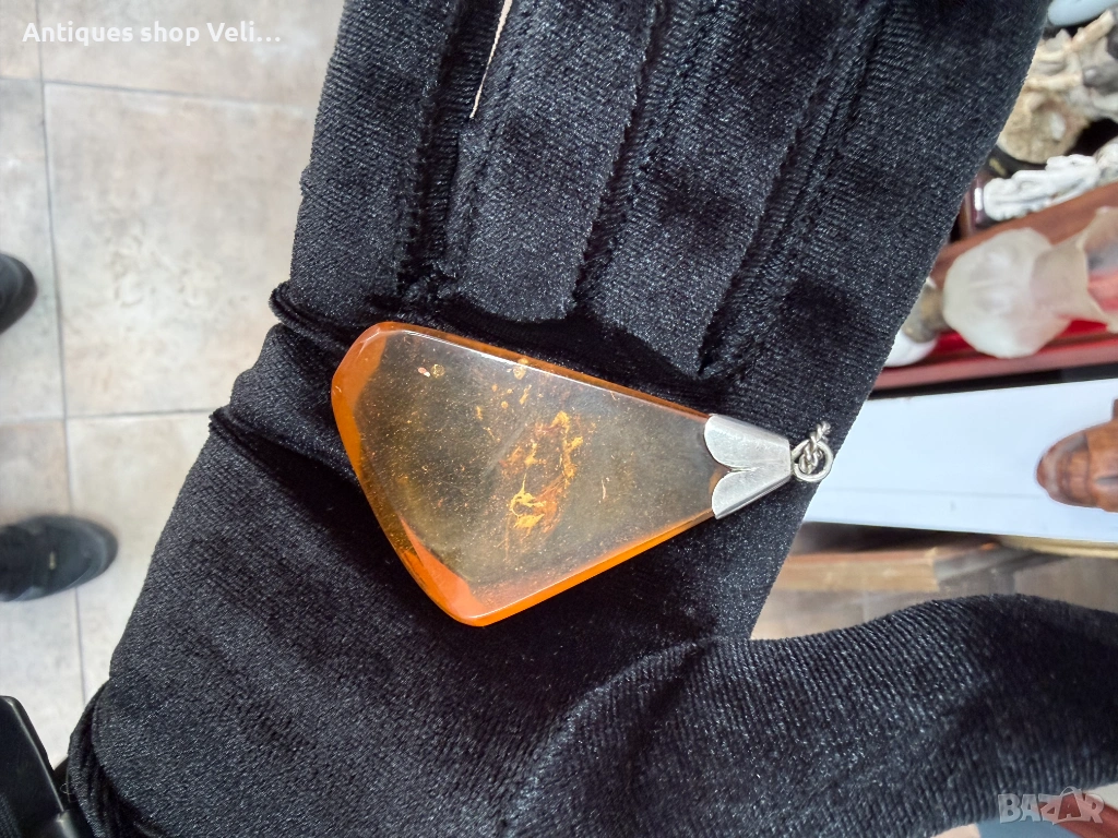 Голяма кахлибарена висулка със сребърен обков. Много добро състояние. Предлагаме доставка с Еконт и лично предаване за градовете Велико Търново, Русе и Сливен! Размери-58/40мм.