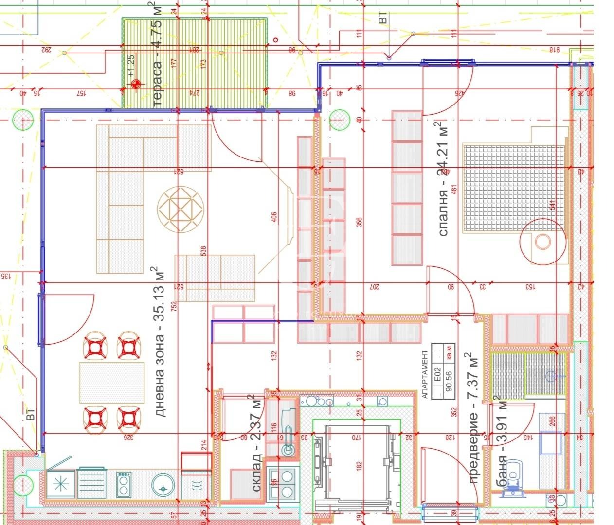Жилището има следното разпределение: входно антре, всекидневна с кухненски бокс /36 кв.м/, родителска спалня /24 кв.м./, баня с тоалетна и склад и южна тераса към хола Цената е без включен ДДС. Ref. ID:25832