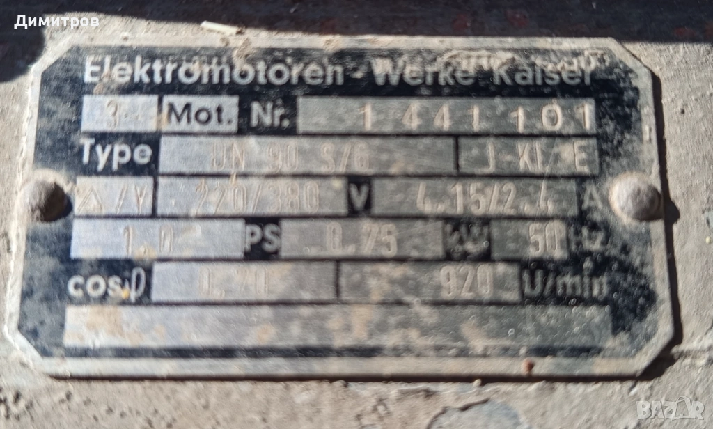 750 вата , работи на 220 и 380 волта , 920 оборота/Мин.