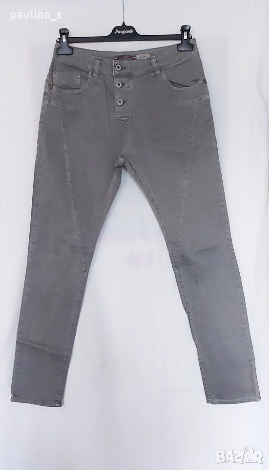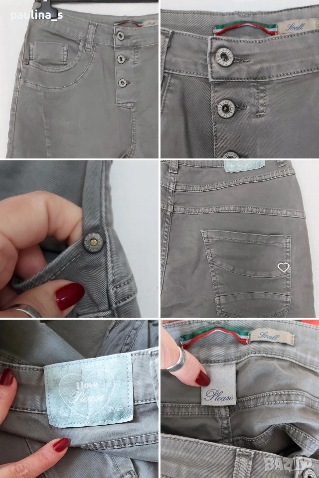2️⃣. M / XL - "Please" ❤️ life style. Цената е крайна, без пазарлъци 20 евро. Еластични сиви дънки с външно закопчаване, много специален модел, слим фит, а имат и вътрешни платки като при ездаческите бричове. Материята е еластична, джобовете стоят ниско долу, не подчертават ханша, а го остойностяват! Изумително красива и практична дреха, цветът е неутрален и подхожда на всичко. Може да си изберете от другите ми обяви с вътрешната търсачка има, дрехи, аксесоари, обувки и козметика.