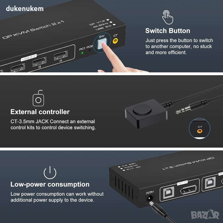 1 x DisplayPort KVM суич