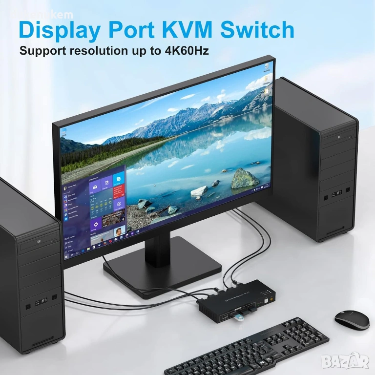 KVM суич 2 PC > 1 монитор (DisplayPort) – управлявайте два компютъра с една клавиатура и мишка