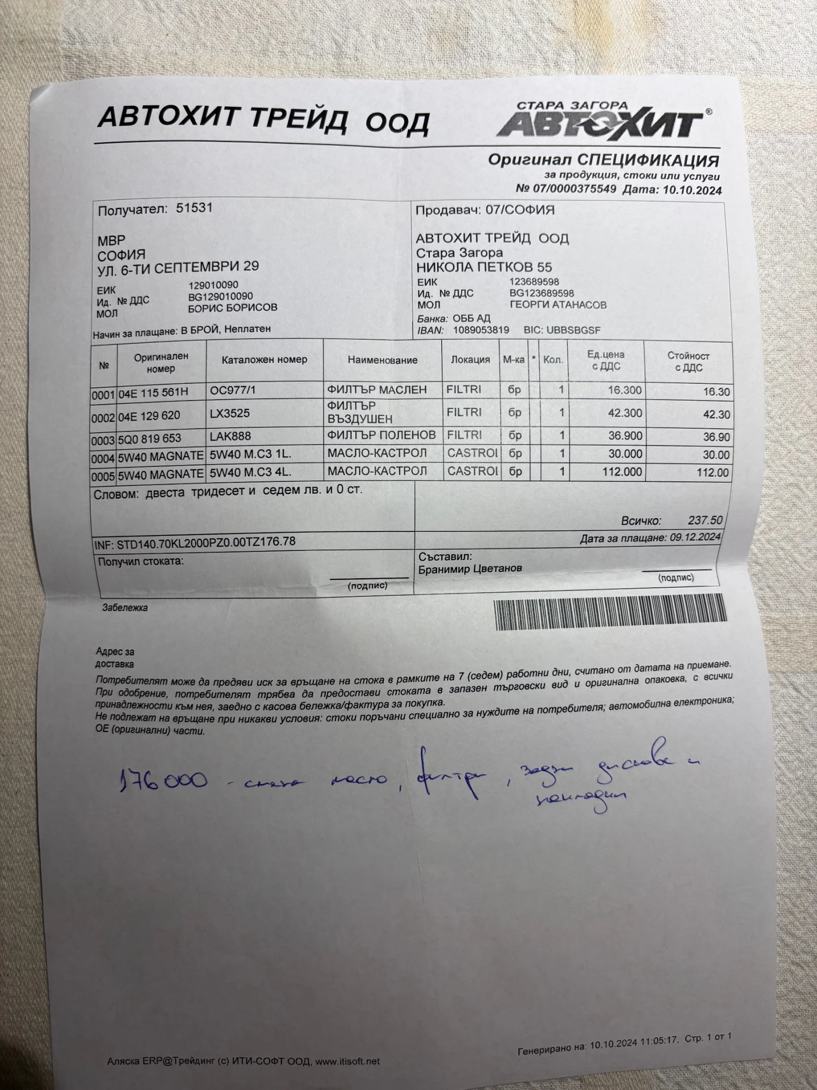 Автомобилът е внесен от Белгия в края на 2023г. на реални 162000 км. /прилагам снимки от търга, имам и още такива/. Сменен е ангренажен комплект, предни амортисьори и изцяло профилактиран в сервиз Маями . Впоследствие са сменени всички метанови дюзи с такива Bosch , свещи и бобини, изцяло е рециклиран и алтернатора, сменени са дискови и накладки. С все сезонни гуми Goodyear, съхраняван в гараж. Отключен CarPlay и Android auto, предни седалки и предно стъкло с подгрев, фабрични би-ксенонови фарове със система за автоматично регулиране и измиване. В момента е на 185000 км. , в перфектно техническо състояние, комфортна возия, динамичен и изключително нисък разход на гориво - 4. 2 за дълъг период от време, извънградско е около 3. 6, euro 6D, ГО и ГТП до края на 2026г. Извънградско изминава около 430 км на метан, има и 50 литров бензинов резервоар.