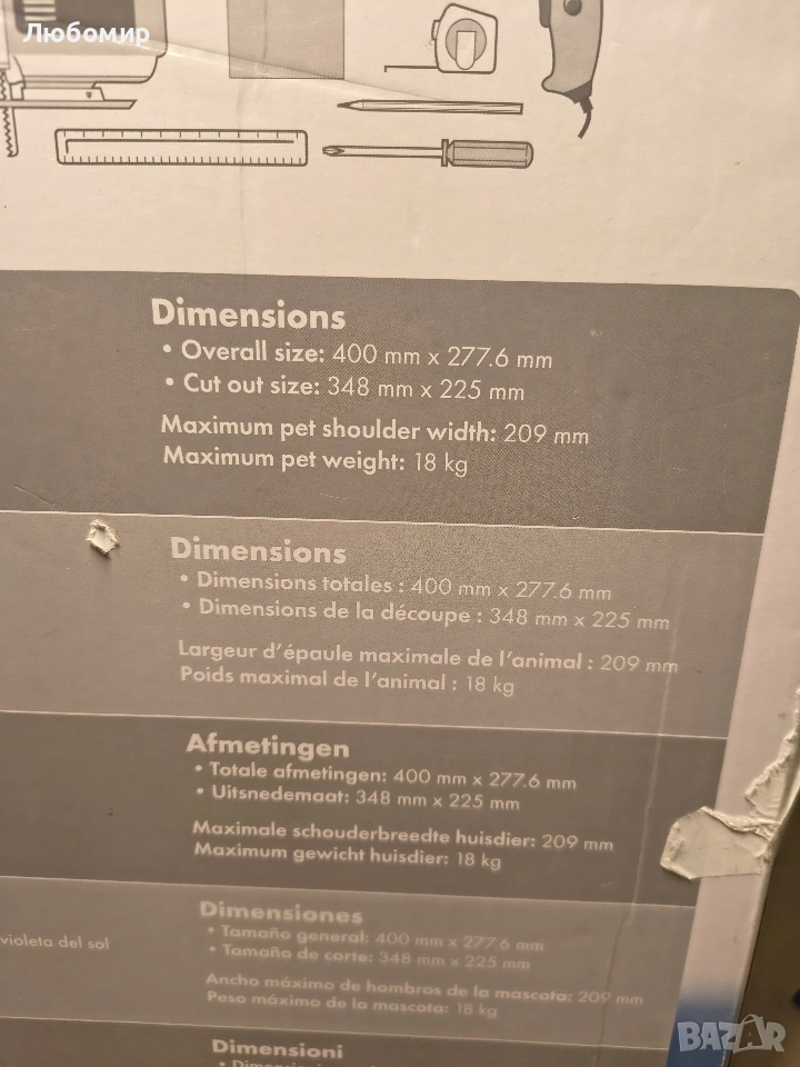 Размер на изрязаното място: 22,5 x 34,8 см (Ш x В)