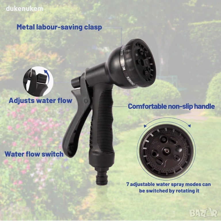 Разтегателен градински маркуч 15 м с пистолет – 7 функции