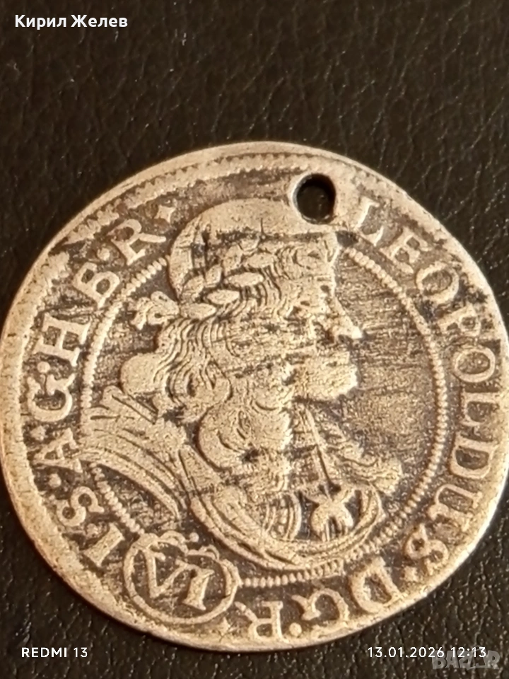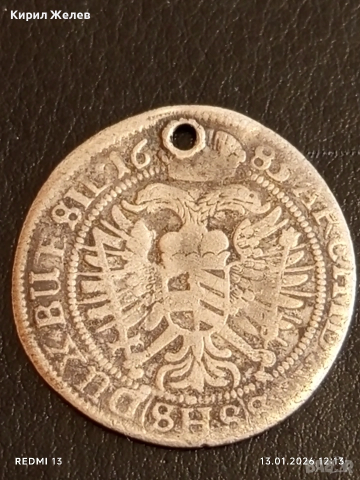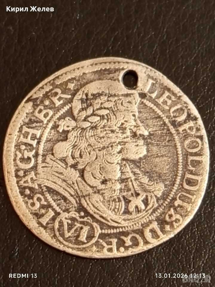 Сребърна монета 6 кройцера 1683г. Леополд първи Австрия 52908 → Обява 53083639