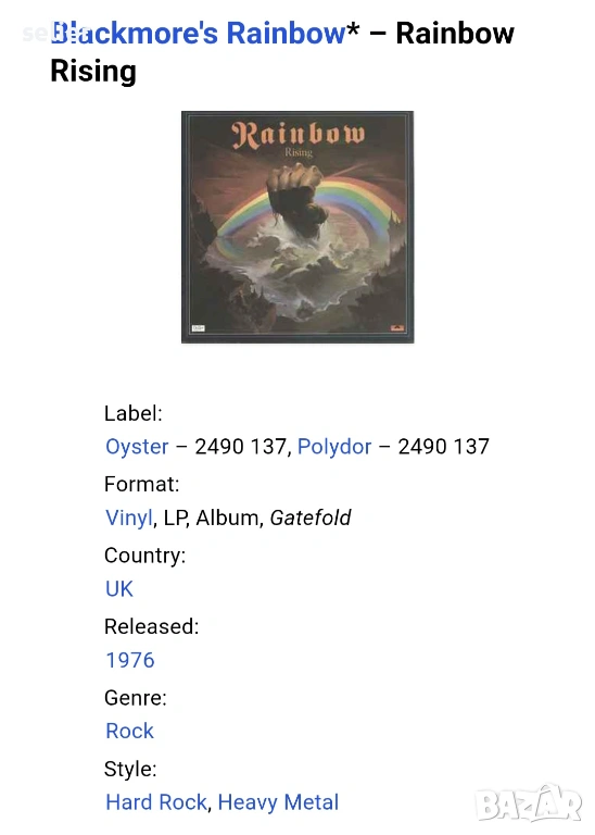 Blackmore's Rainbow ‎– Rainbow Rising Издание 🇬🇧 UK 1976г -GATEFOLD Състояние на винила:VG+ Състоя → Обява 53083721