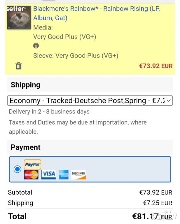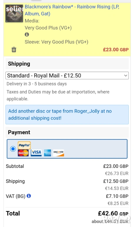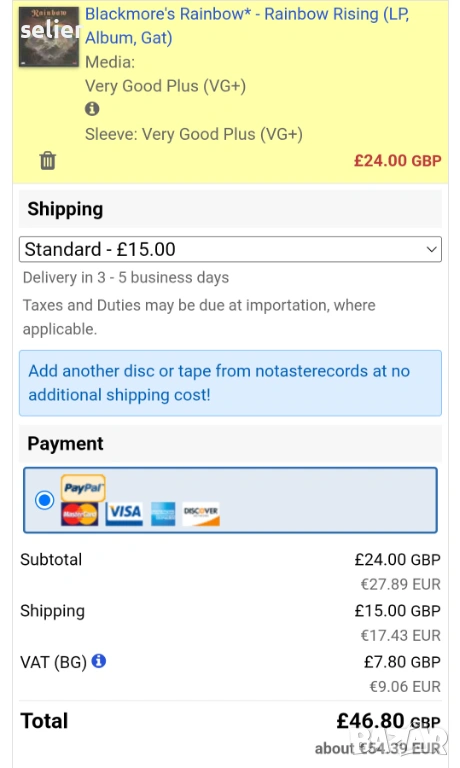 Състояние на винила:VG+