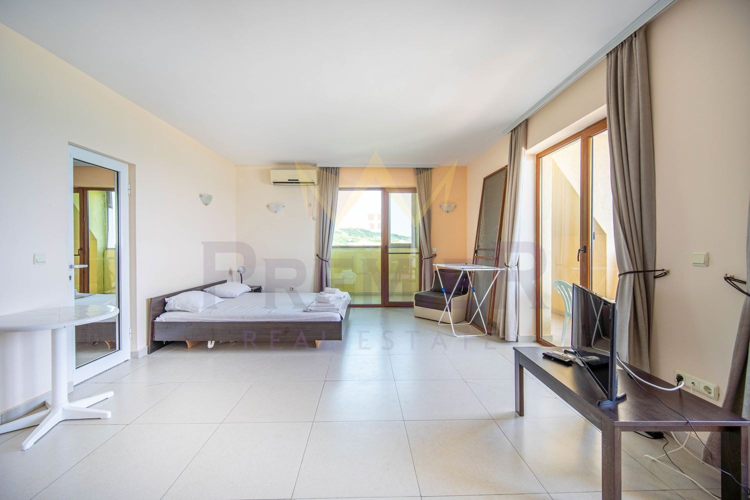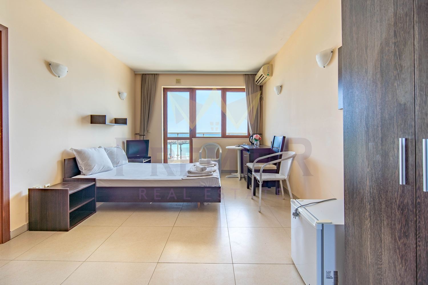 На първия етаж ще намерите уютно антре, апартамент тип студио с кухненски бокс и трапезария, просторен балкон и баня перфектно за семейна почивка или отдаване под наем.