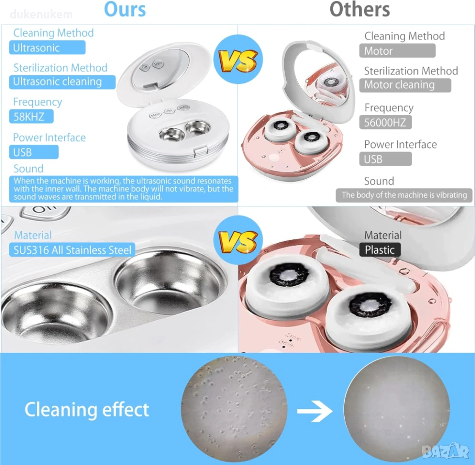 Ултразвуковa почистващa ваничка за контактни лещи – USB, компактна