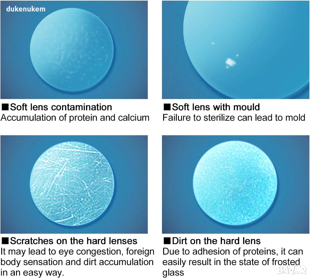 Ултразвуково почистване (20 000+ Hz) – мощни ултразвукови вълни с дълбоко проникване, които ефективно премахват замърсявания, протеинови отлагания и микрочастици от лещите