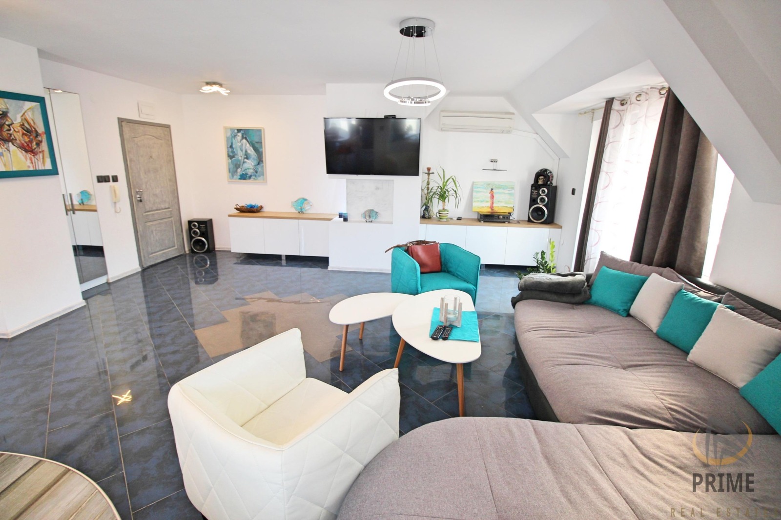 Напълно обзаведен тристаен апартамент на две нива - тип мезонет, разположен в сграда с асансьор в ж.к. Лазур, до флора, до морската. В цената има включено паркомясто в подземния гараж в сградата.