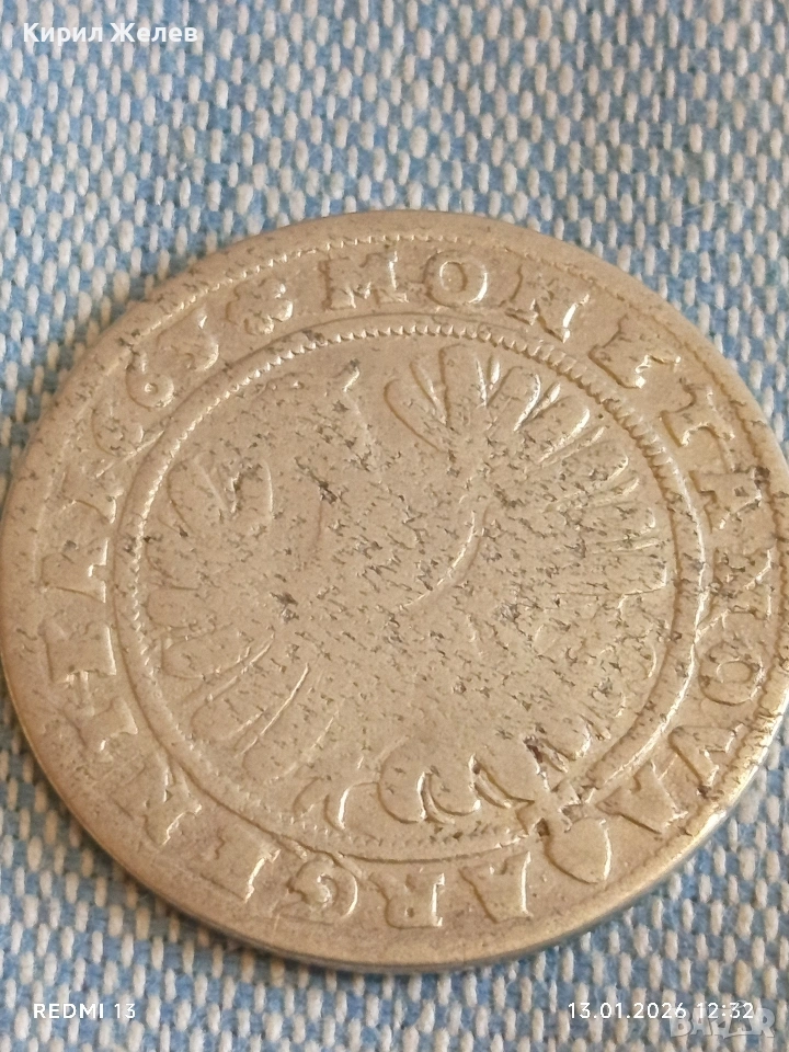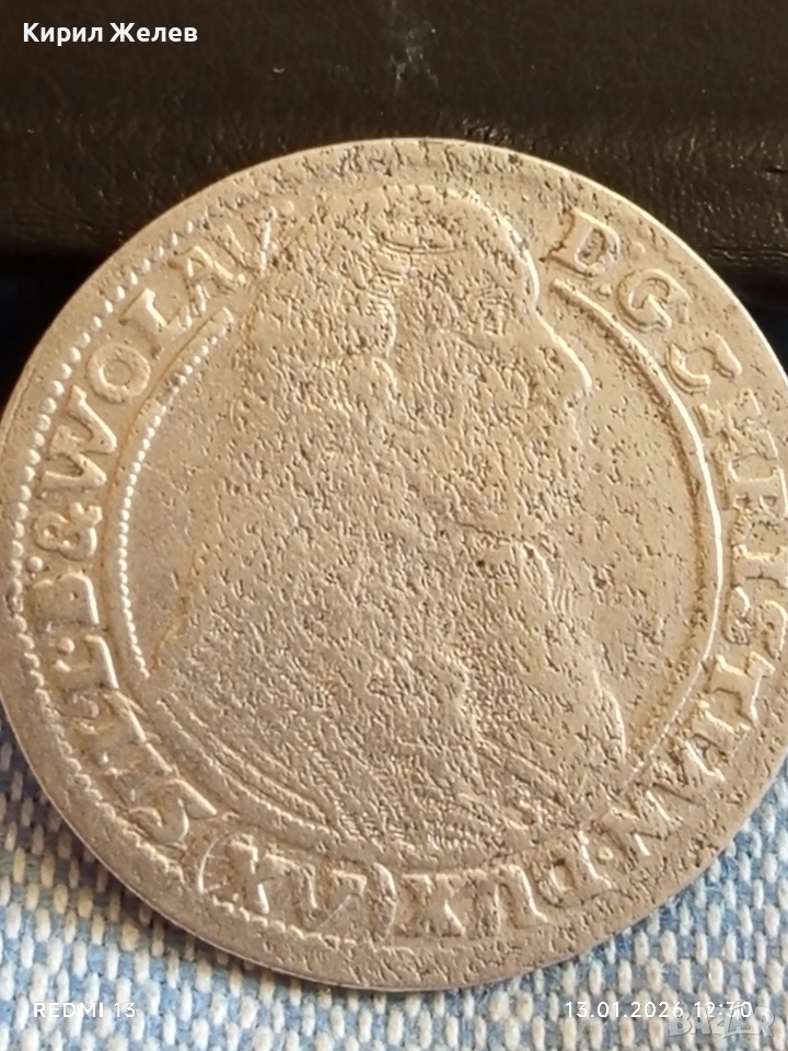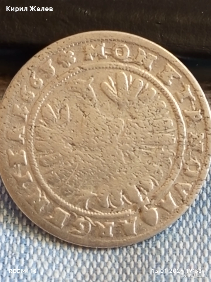 Сребърна монета 15 кройцера 1663г. Кристиян Силезия -Легниц-Берг 52921