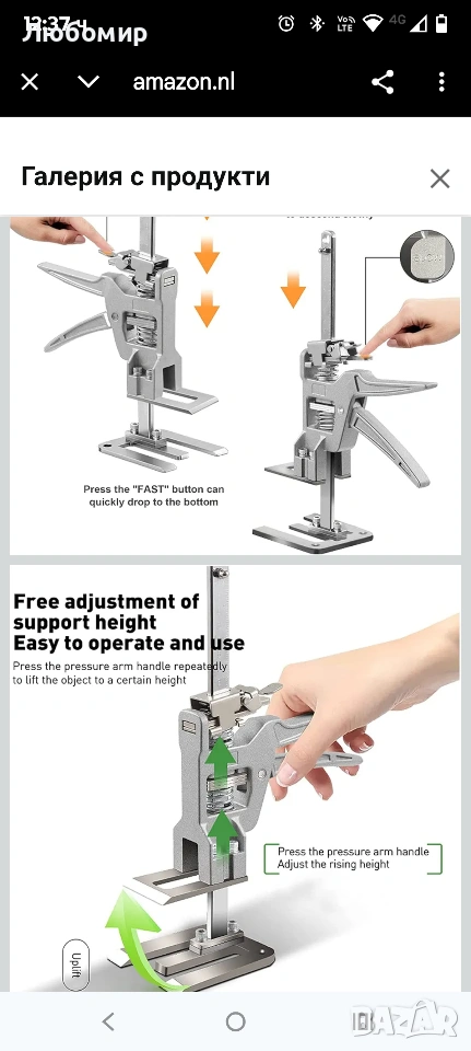 Трета ръка на живота: Когато премествате мебели и уреди като диван, легло, хладилник и др., този преносим крик е най-добрият ви помощник. Той може лесно да се повдигне, без повече притеснения за гърба ви. Красивата опаковка може да бъде най-добрият подарък за семейството и приятелите, те ще бъдат много щастливи