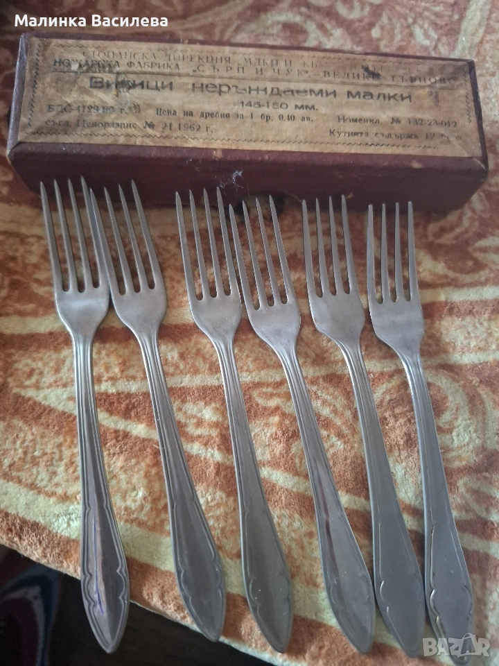 Налични 6 бр вилици за торта старо производство от соца в отлично състояние,в оригинална кутия
