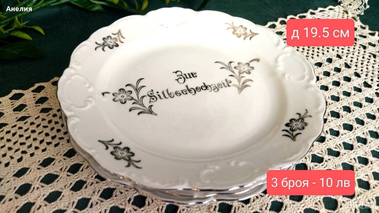 🌹 3 броя същите чинии 19.5 лв с обща цена 10 лв/5.11€ ,заради малък чип отзад показан на снимката.