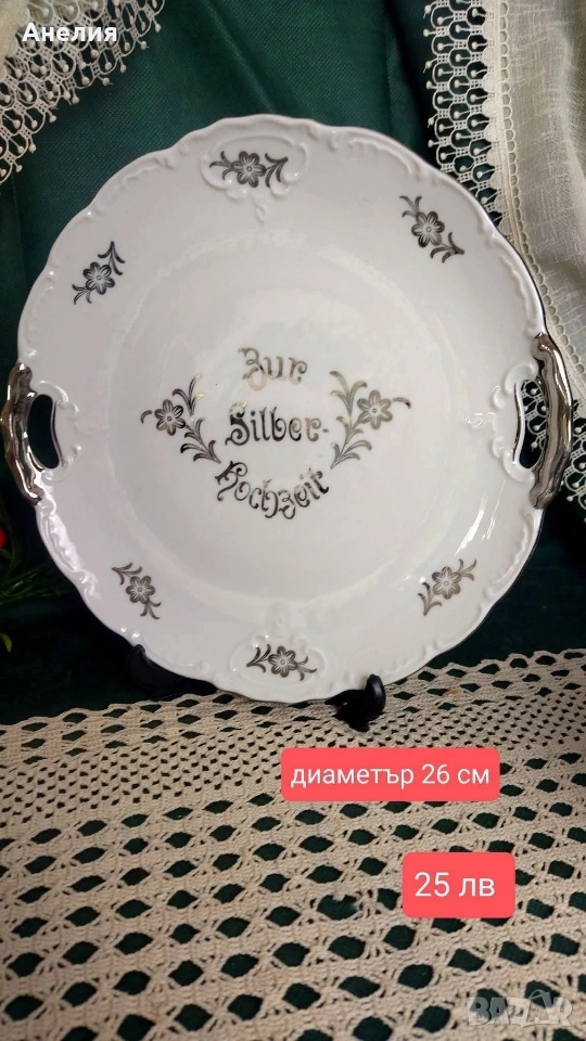 🌹Плато кръгло с 2 дръжки с диаметър 26 см и цена 25 лв/12 78€