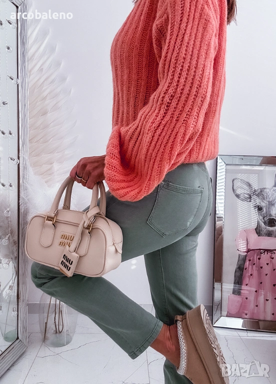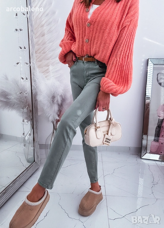 Маслиново зелени дамски дънки с прави крачоли