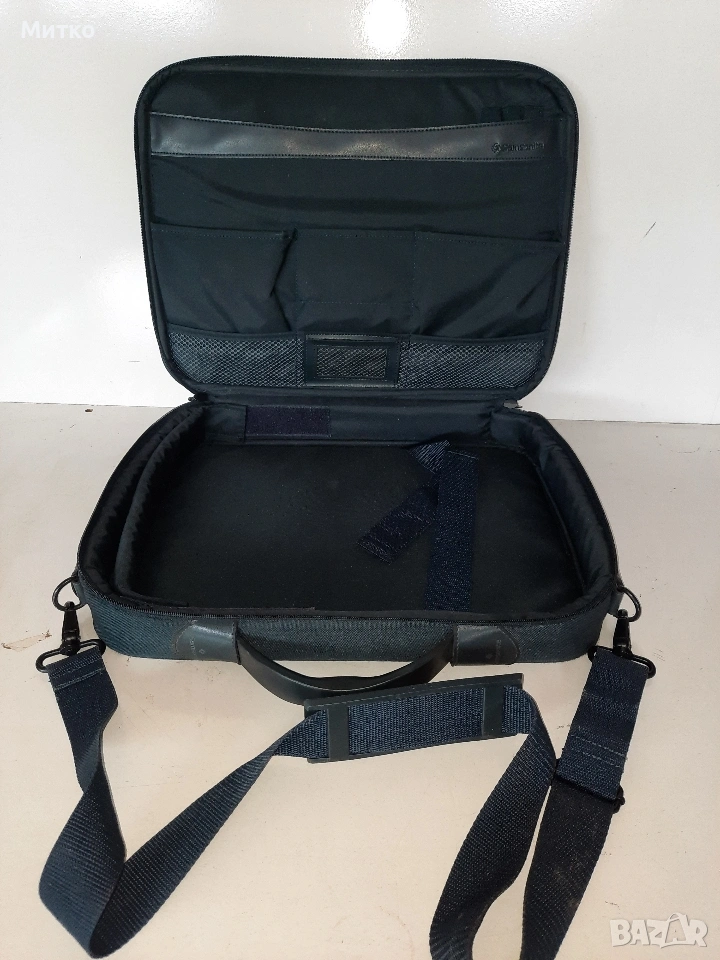 Здрава запазена малко използвана чанта за лаптоп или документи марка Samsonite.Чантата е тъмно синя на цвят.Размерите ги има на снимките.Външните са- Ширина 34см.Дължина 42см височина 9см. Вътрешните са 40 см на 30 см.Има и каишка за през рамото.