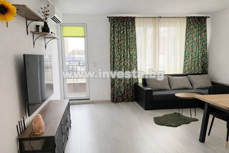 Оферта 43305. Тристаен, напълно обзаведен апартамент в нова сграда, въведена в експлоатация 2022 г. Състои се от светъл и просторен хол с кухненски бокс, две спални, баня с тоалетна, втора тоалетна, преустроена в перално помещение, коридор, складово помещение и две тераси. Отлично местоположение - в близост до детски градини, ясли и училища, с директни спирки на градския транспорт, ритейл парк.