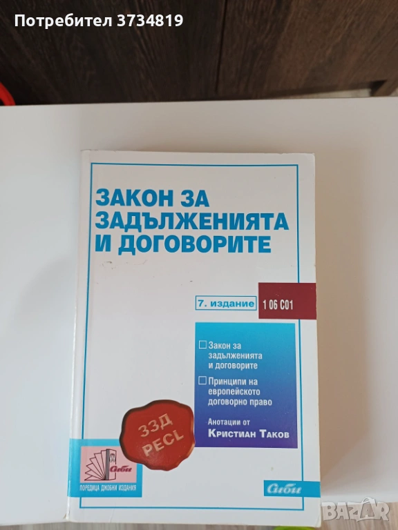 4.Закон за задълженията и договорите.Седмо издание. Цена 3 евро ;