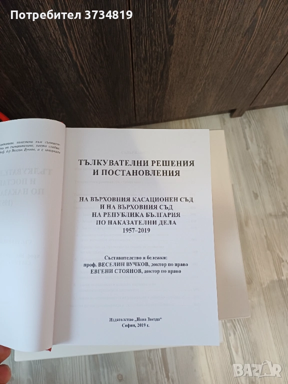 2.Вучков, Веселин - Сборник тълкувателни решения и постановления на Върховния касационен съд и на Върховния съд на Република България по наказателни дела (1957 - 2019). Цена 40 евро или левовата им равностойност ;