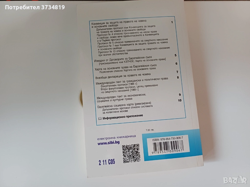 5.Конвенция за защита на правата на човека и основните свободи. Международни договори и право на ЕС. Цена 5 евро;