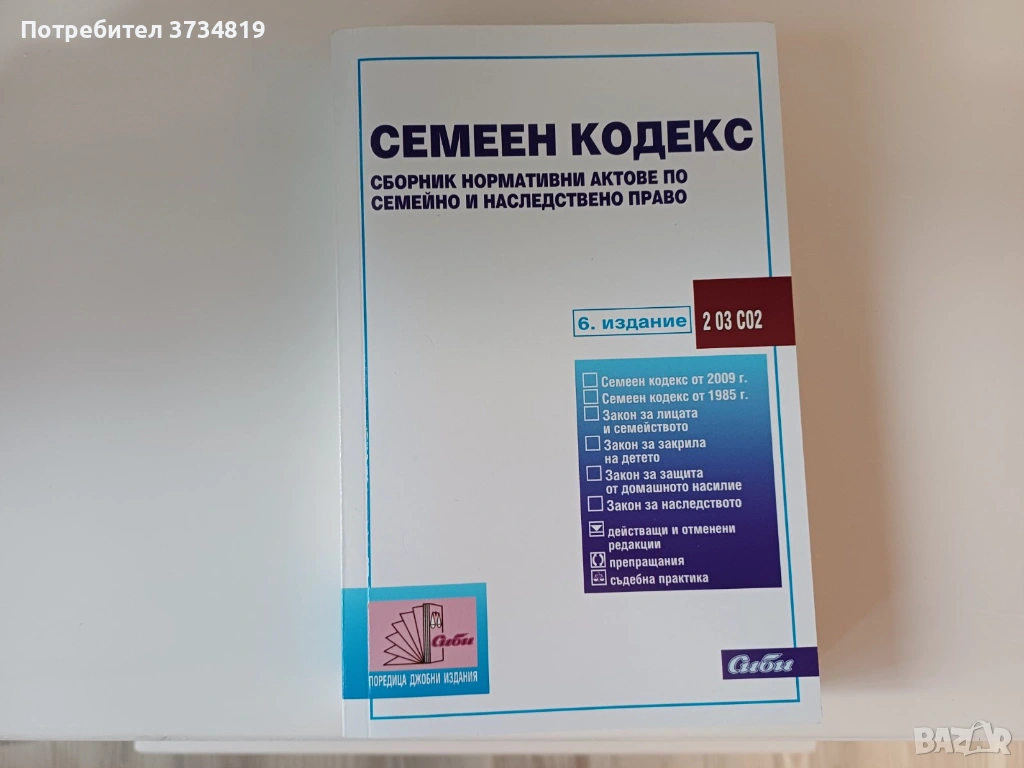 7.Семеен кодекс.Сборник нормативни актове по семейно и наследствено право.Цена 3 евро ;
