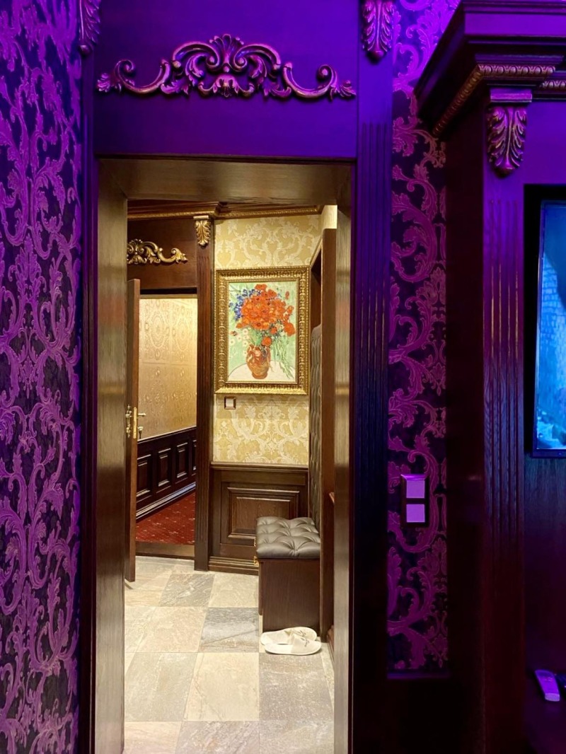 В него са разположени хотелска част с един апартамент и 4 луксозни стаи (всяка от които със собствен санитарен възел).