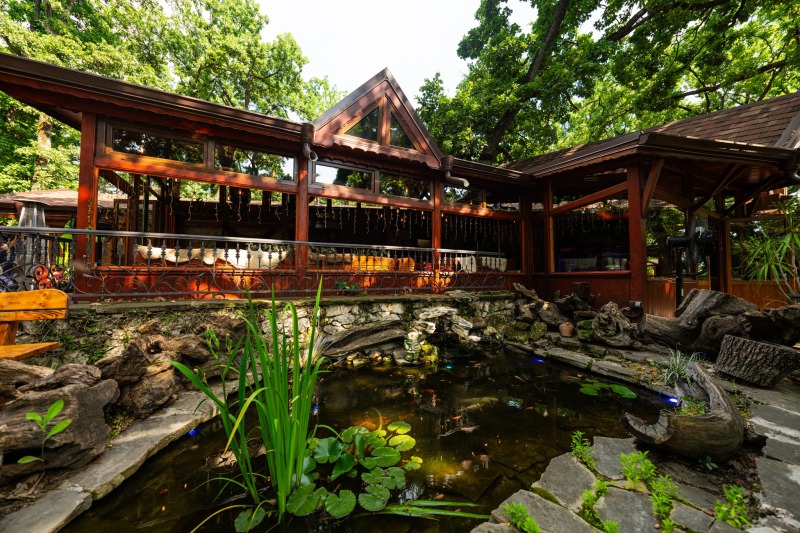 Ресторантска част с две отделни зали, всяка от които с изградена камина.