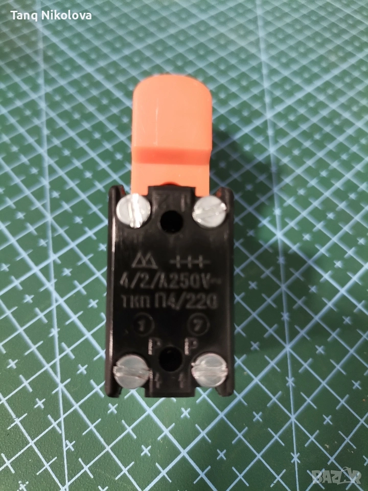: Продавам чисто нов пусков механизъм за електрически ръчни инструменти. Подходящ за по-старите модели български бормашини и други машини от марката Елтос/Sparky. Технически характеристики: Модел: ТКП П4/220 Напрежение/Ток: 4(2)А / 250V Свързване: 4 винтови клеми Цвят на спусъка: Оранжев Ключът е в перфектно състояние, готов за монтаж. Цена: 12 лв.