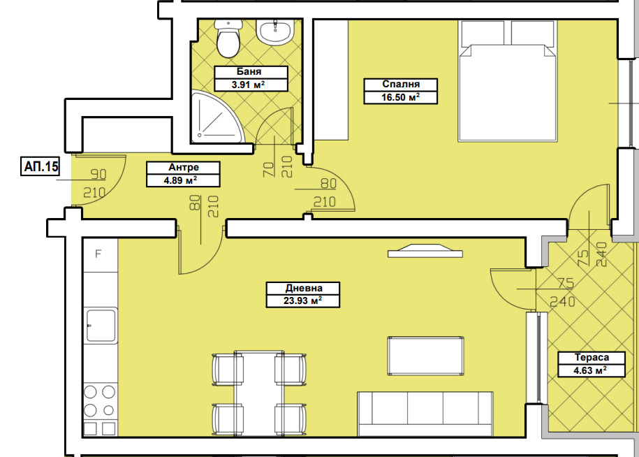 - дневна с кухненски бокс с площ 23,93 кв.м.