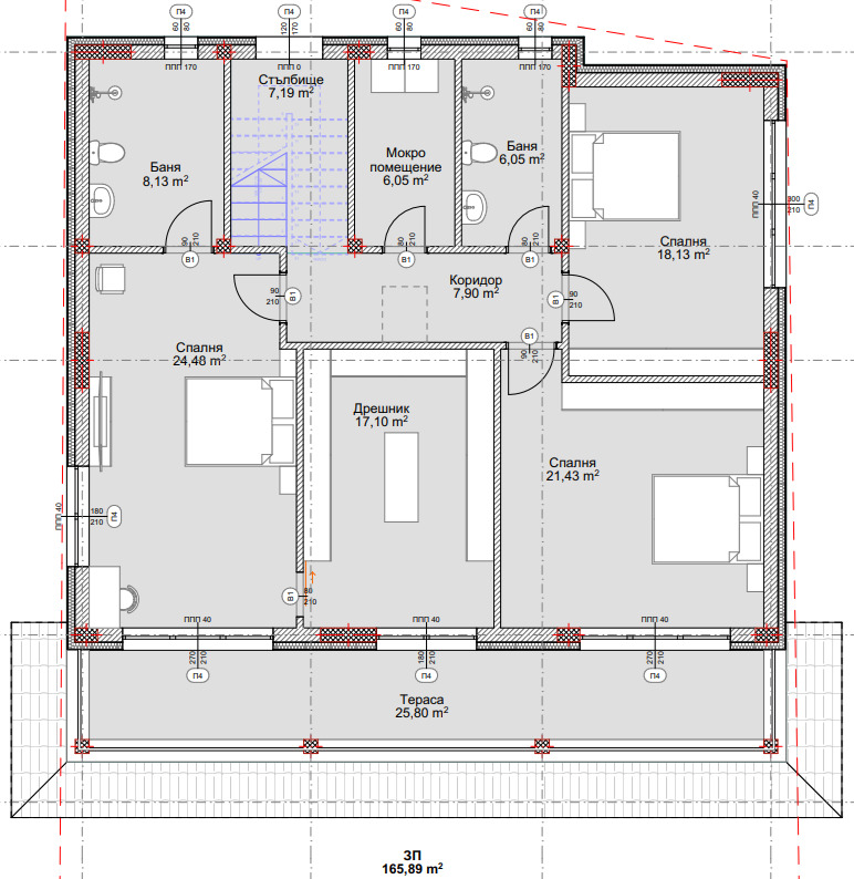 - родителска спалня с площ 24,48 кв.м.