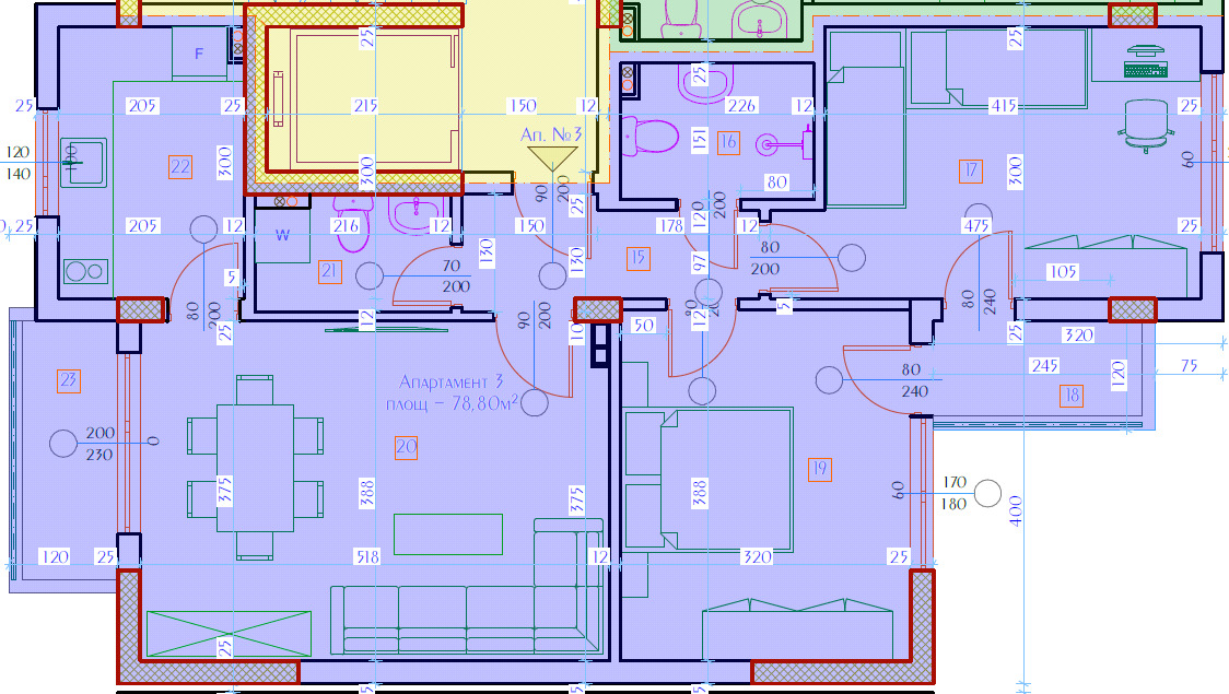 - дневна с трапезария с площ 19,43 кв.м.