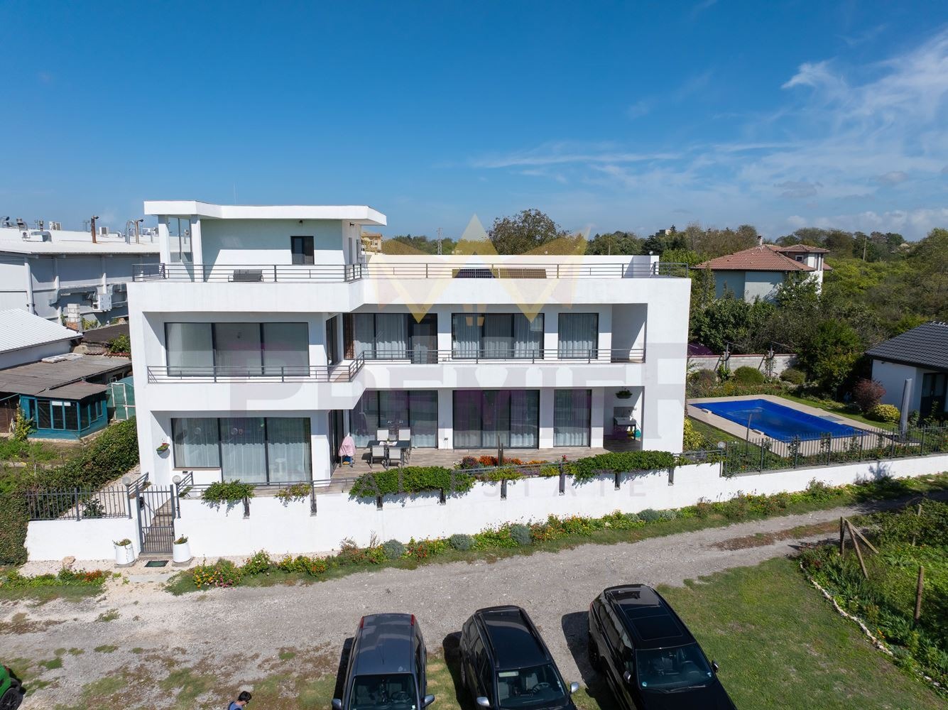 Tази къща предлага зашеметяваща нескриваема морска панорама от всеки етаж . Архитектурата е модерна и минималистична, с изчистени линии и големи стъклени фасади, които отварят интериора към морето и небето. Къщата е с плосък покрив върху който е изградена огромна тераса от 109 кв.м с уникална морска панорама .Къщата разполага с огромна трапезария с кухненски бокс от 109 кв.м , две просторни спални , една кино зала която може да бъде превърната в голяма спалня , три санитарни помещения , една самостоятелна отделна малка къща с рзп от 45 кв.м ,голям басейн , парко места ,хидрофорна система ,соларна система, и други екстри